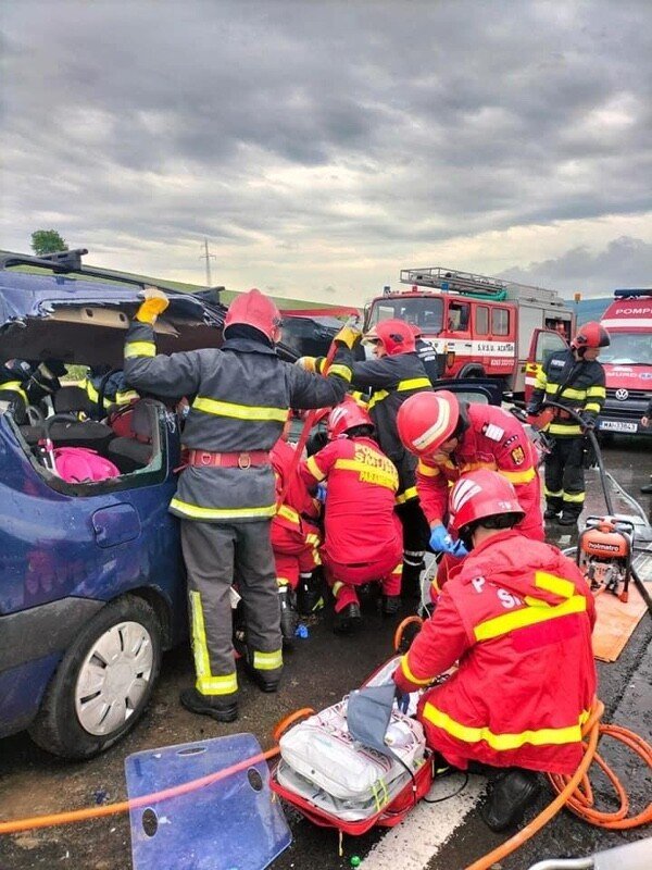 „Doar o privire au schimbat cei doi salvatori, iar în câteva secunde unul a întrerupt alimentarea electrică a autoturismului, iar celalalt a deschis extinctorul și a stins flacăra ce amenința viața persoanelor încarcerate. Sirenele se apropiau, iar colegii pompieri ai ISU Mureș, au intervenit cu promptitudine și eficiență.” transmit cu mândrie cei de la ISU SIBIU