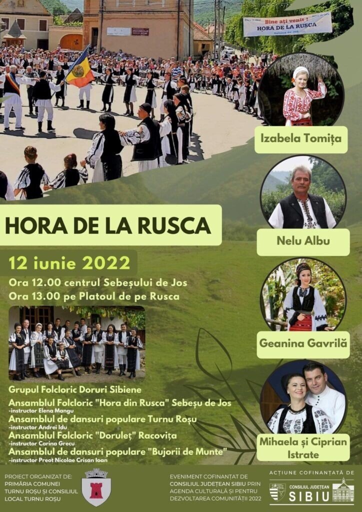 Duminică, 12 iunie 2022, Primaria TURNU ROSU ne invită la Festivalul ”Hora din Rusca”, cel mai important eveniment al comunității, un simbol al unității, ce datează din anul 1784. Proiectul este cofinanțat de Consiliul Judetean Sibiu, prin #AgendaCULTURALĂ.