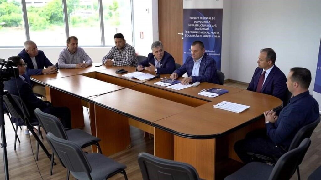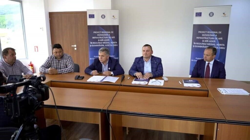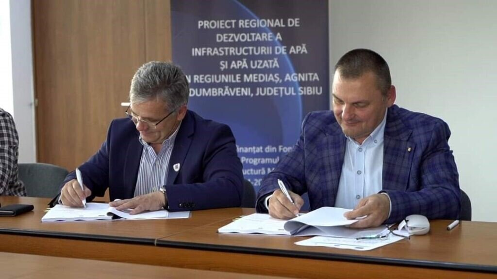Semnarea contractului „Extindere rețele de apă, rețele de canalizare, conducte de aducțiune și gospodării de apă în Șaros pe Târnave, Ernea, comunele Hoghilag, Alma și Dârlos (Curciu) din județul Sibiu”