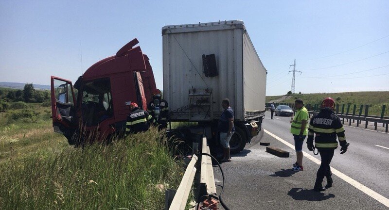 Un autoaccident, urmat de un incendiu s-a produs pe A1 km 257, pe sensul Sibiu -Sebeș. Un autocamion a ieșit în decor, fiind blocată banda de urgență de pe A1.
