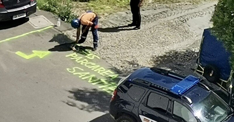 Aceștia au început să devină, ilegal, stăpâni pe mai multe străzi din cartier, dar și pe anumite locuri adiacente, pe care le-au transformat în așa zise „parcări de șantier”. Ei bine, figura nu a ținut mult, asta datorită unui echipaj de Poliție Locală Șelimbăr. Sosiți la fața locului și constatând faptul că marcajul de pe trotuar era ilegal, aceștia i-au pus pe muncitori să-l șteargă. Conform filmării, randamentul intrării în legalitate era extrem de scăzut, necesitând forță fizică epuizantă, afirmație dedusă din imaginea aruncării pe jos a unei căști de protecție, în semn de supraîncălzire fizică.