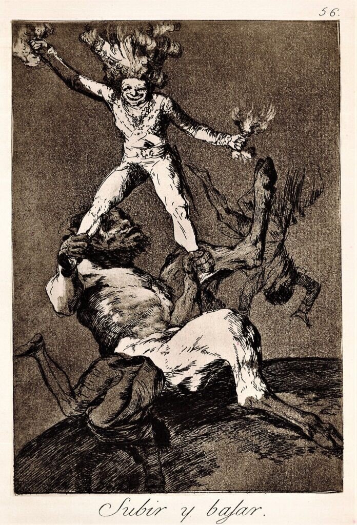 Într-un comentariu despre „Capricii”, Goya spunea că lumea este o mascaradă, oamenii încercând prin voce, veșminte, chipuri, să apară diferiți de ceea ce sunt în realitate.
