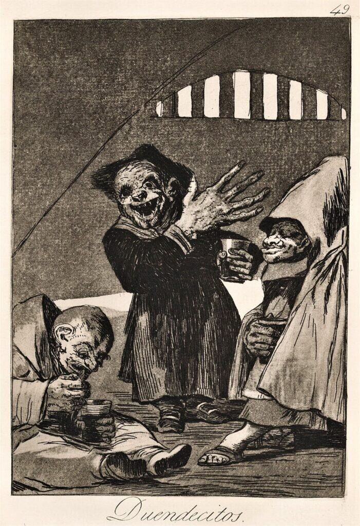 Artistul a valorificat în „Capricii” toate cunoștințele sale care l-au format: superstiții, basme, demoni și strigoi din folclorul aragonez, cât și recuzita vrăjitorească și demonică.