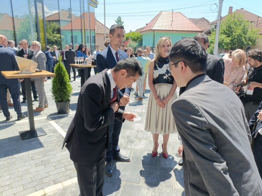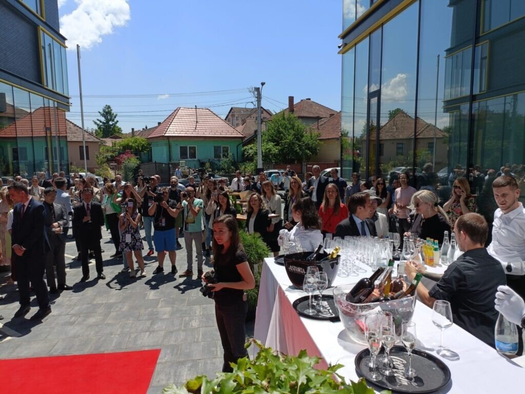 La sediul NTT DATA din Sibiu au fost primiţi cu şampanie, covor roşu parteneri de afaceri, colaboratori, dar şi politicieni şi invitaţi speciali. Centrul atenţiei a fost pe Hiroshi Ueda, ambasadorul Japoniei la Bucureşti, care a sosit într-o limuzină însoţit de trei consiliere. A fost primit de un director NTT DATA venit special de la Tokyo pentru eveniment.
