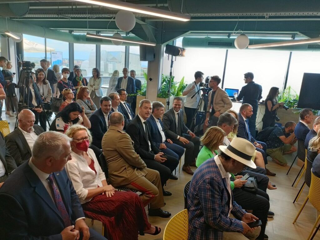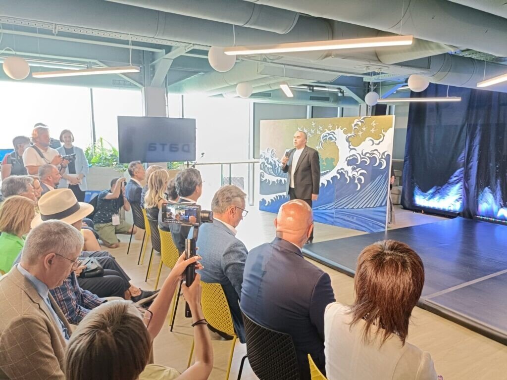 Pentru a marca şi debutul FITS 2022, invitaţii au fost poftiţi la etajul 6. Unii au ales să aştepte la rând la cele două lifturi. Dintre VIP-urile prezente, doar generalul Bârsan a ales să urce pe scări toate etajele. La sala de conferinţe a fost prezentat un scurt spectacol de teatru japonez. Constantin Chiriac, directorul Teatrului Radu Stanca din Sibiu şi al FITS a ţinut un discurs pe care l-a început cu recitarea de versuri în engleză. Am remarcat că şi engleza lui semăna cu cea vorbită de japonezii prezenţi la eveniment. Au urmat discursurile lui Daniel şi Maria Metz şi ale ministrului Culturii, Romaşcanu. De altfel, ministrul Culturii nu apărea deloc în invitaţiile oficiale şi program, el, se pare, fiind venit neanunţat. Au mai fost şi discursurile ambasadorului Japoniei şi a directorului NTT DATA din Tokyo. Apoi invitaţii au fost poftiţi la un bufet care conţinea şi unele mâncăruri specific japoneze, dar nu sushi. Pe partea de protocol, firma angajată pentru eveniment şi-a făcut treaba ca la carte de la primirea invitaţilor, servirea de băuturi, bufet, îndrumarea invitaţilor prin sediul firmei.