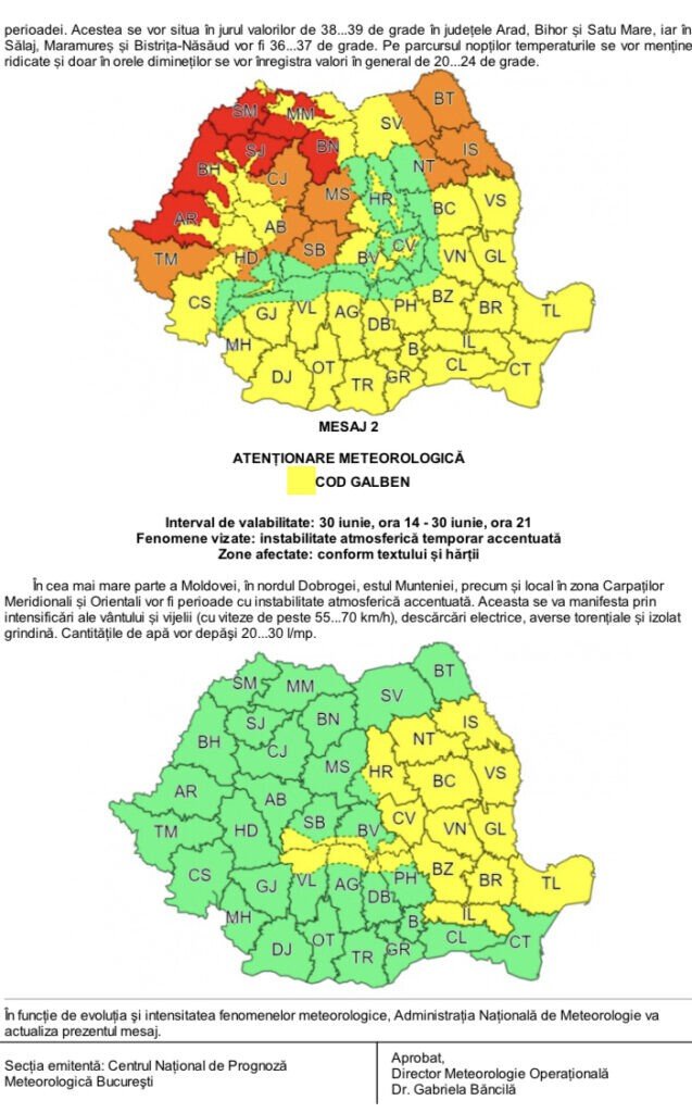 Interval de valabilitate: 30 iunie și 1 iulie