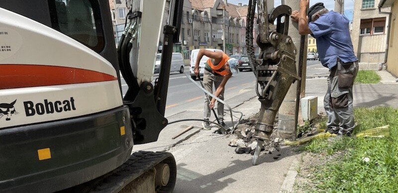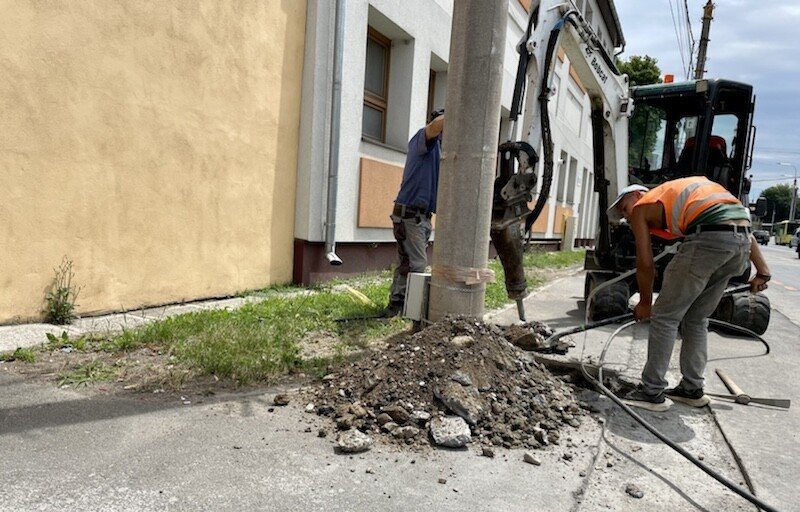 Administrația locală „se luptă” de ceva timp, cu firele inestetice ce atârnă pe mai mulți stâlpi din oraș. Așa că a hotărât să le îngroape, treptat. Au rezolvat ceva de cablu și internet, a venit rândul celor de curent.