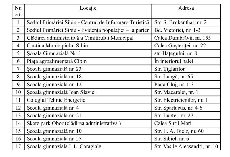 17 centre fixe de recenzare disponibile sibienilor în mai multe zone din oraș, până în 24 iulie