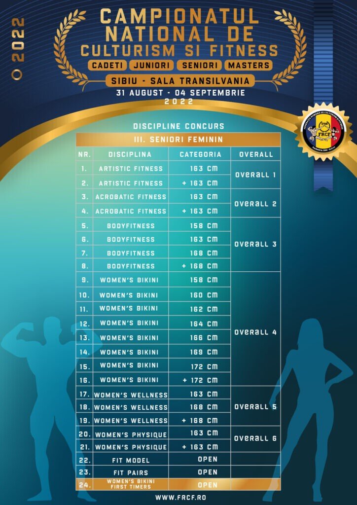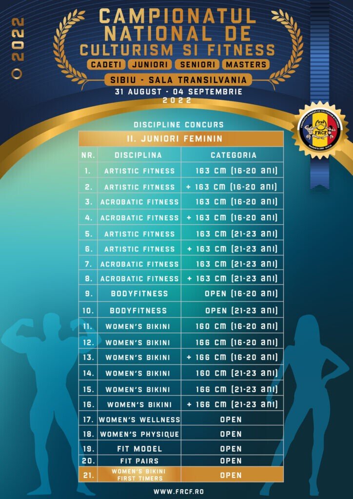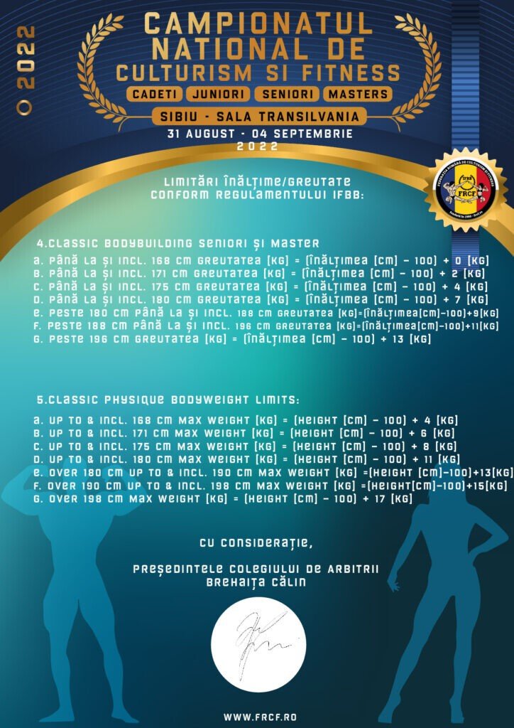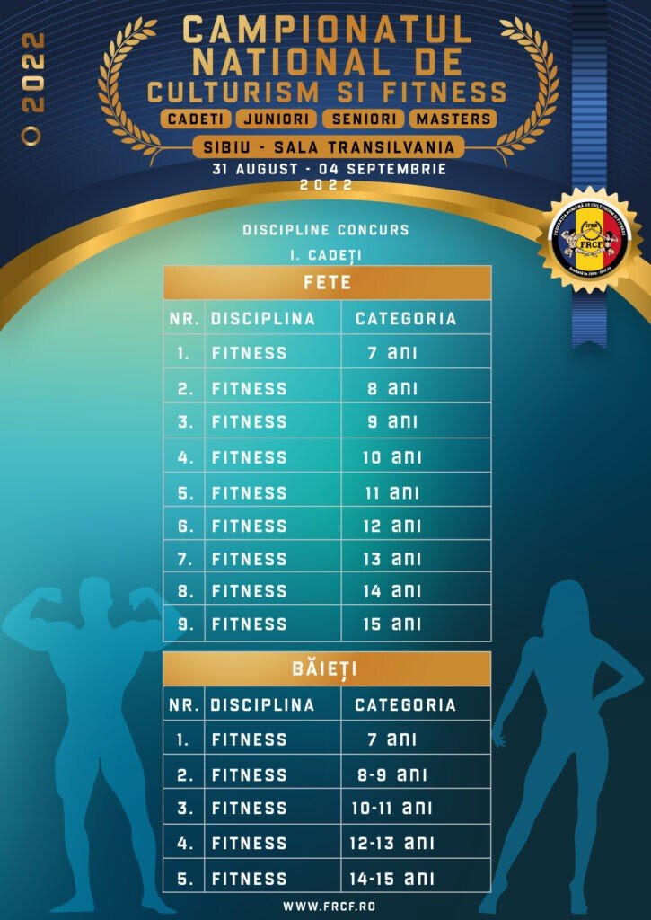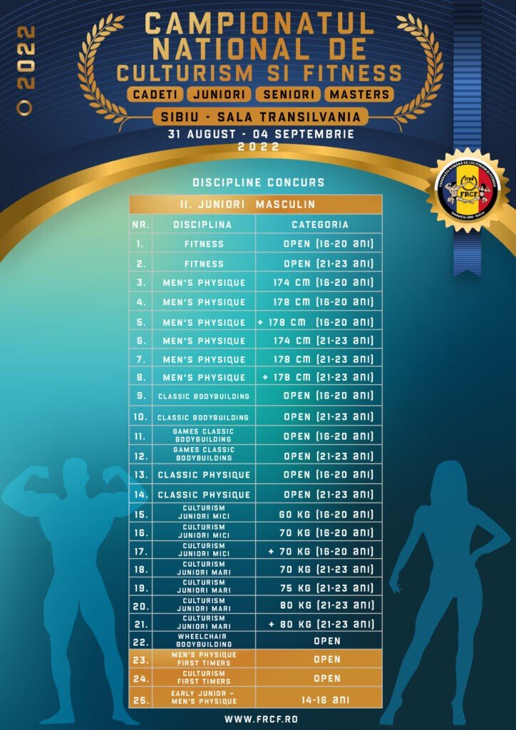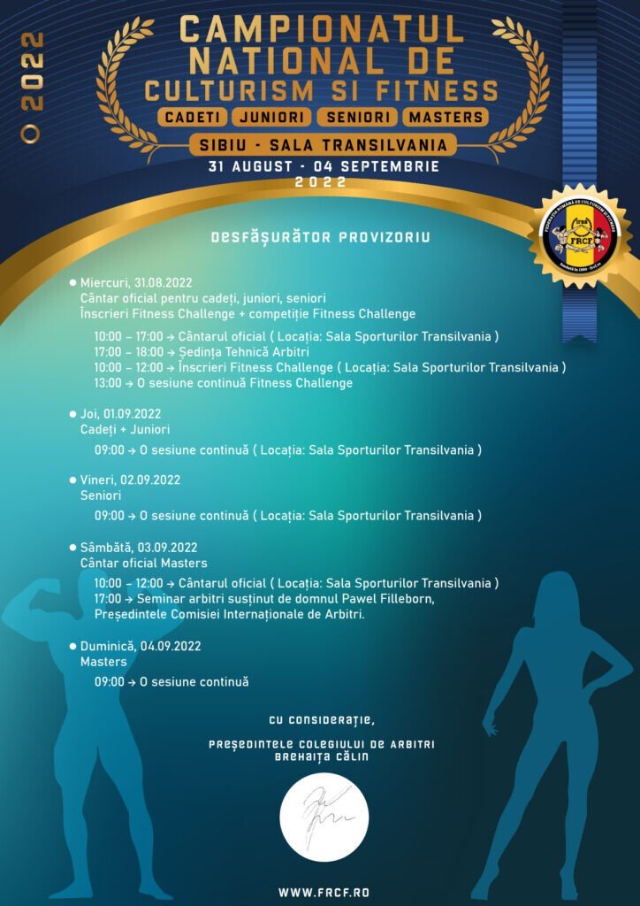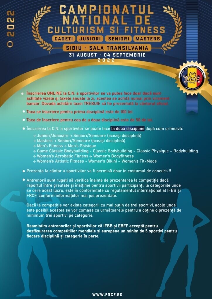 Campionatul Național de Culturism și Fitness se va desfășura în perioada 31 august – 4 septembrie 2022 la Sala Transilvania din Sibiu