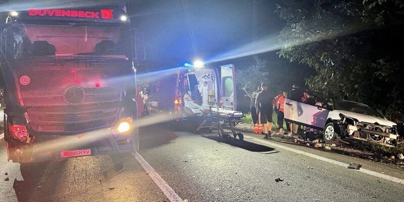 Un autoturism și un autocamion au intrat într-o coliziune violentă, în această noapte, pe DN 7 km 172+700, în localitatea Râmnicu Vâlcea.