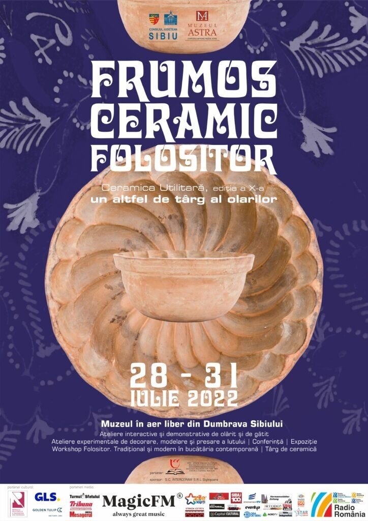 Muzeul ASTRA, instituție ale cărei acțiuni sunt posibile prin finanțarea Consiliului Județean Sibiu, organizează în perioada 28-31 iulie 2022 a X-a ediţie a Târgului Frumos. Ceramic. Folositor . Ceramica Utilitară. Un altfel de târg al olarilor în Muzeul în aer liber din Dumbrava Sibiului.