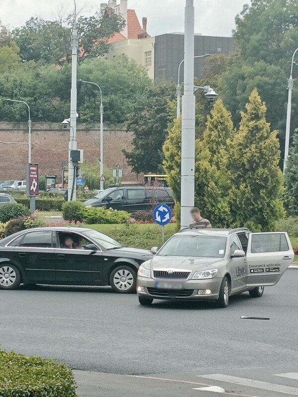 Din primele informații, mașina neagra nu a acordat prioritate de trecere unei alte mașini. Conform martorilor, mașina vinovată era condusă de o șoferiță în vârstă de 19 ani din Arad. Din mașina ce circula regulamentar în sensul giratoriu și care oferea servicii de car sharing, o clientă a fost rănită ușor.