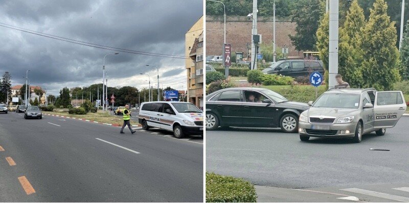 FOTO: Accident în sensul giratoriu de la intersecția străzilor Corneliu Coposu și Constituției