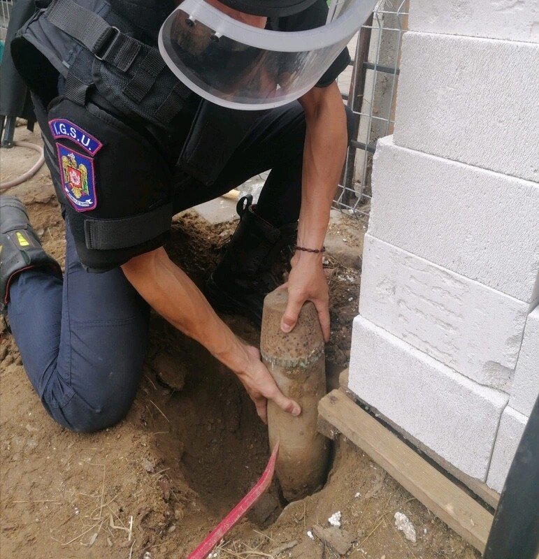 În această după amiază, ca urmare a unui apel venit pe numărul de urgență 112 din partea unui cetățean care efectua lucrări de amenajare la curtea casei, în Gura Râului, echipajul pirotehnic al Inspectoratului pentru Situații de Urgență „Cpt. Dumitru Croitoru” al județului Sibiu, s-a deplasat de urgență la fața locului.