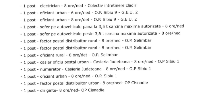 Buna ziua.ma intereseaza un post la posta romana in jud sibiu,ma precis comuna Loamnes,Pauca,Ludos,etc
