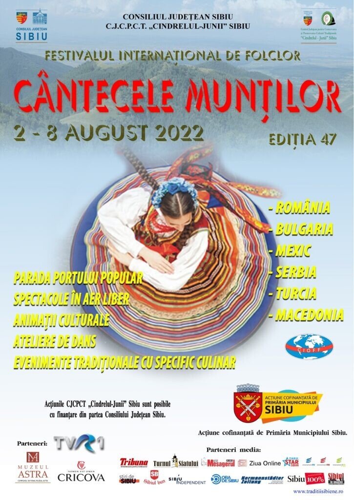 Cea de-a 47-a ediție a Festivalului Internațional de Folclor „Cântecele Munților” este organizat în 2-8 august 2022, de Consiliul Județean Sibiu și Centrul Județean pentru Conservarea și Promovarea Culturii Tradiționale „Cindrelul – Junii” Sibiu.