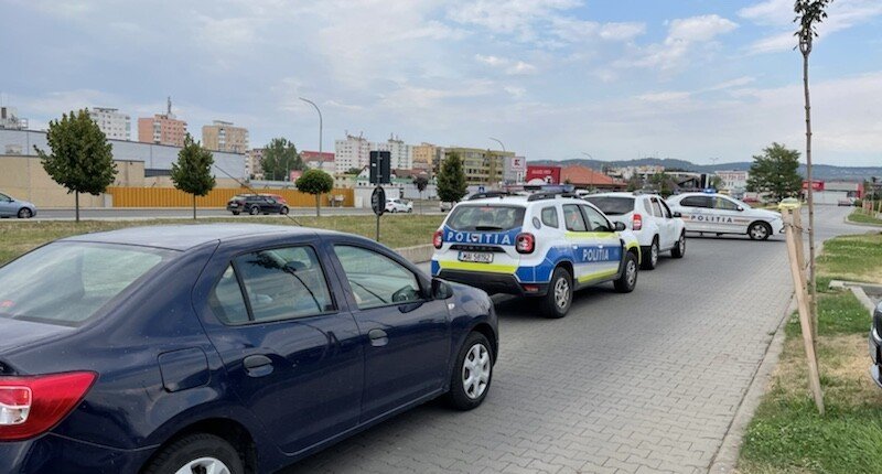 O mașină înmatriculată în județul Sibiu, a fost blocată în trafic de către mai multe echipaje de Poliție. Evenimentul s-a produs în apropierea magazinului Carrefour din cadrul mall-ului Shopping City. Șelimbăr.