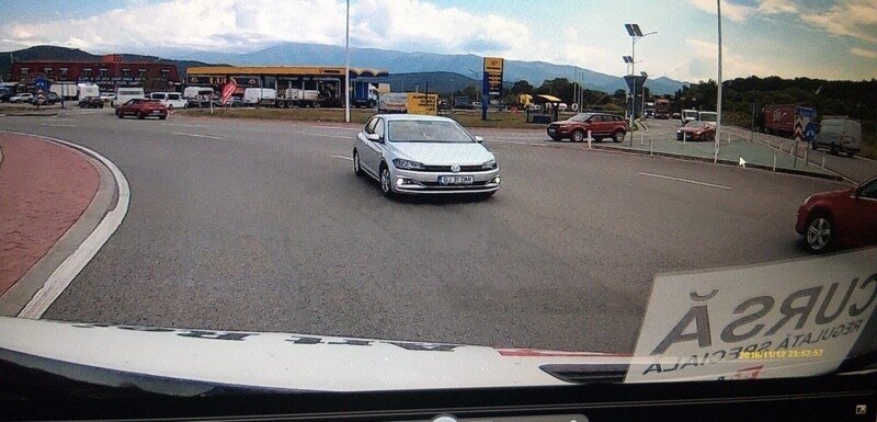 Conform martorilor, șoferul a intrat cu viteză în giratoriu și deși a fost claxonat de ceilalți participanți la trafic, și-a continuat deplasarea, realizând complet sensul giratoriu, intrând chiar și pe ieșirea unei benzinării, deci tot pe interzis.