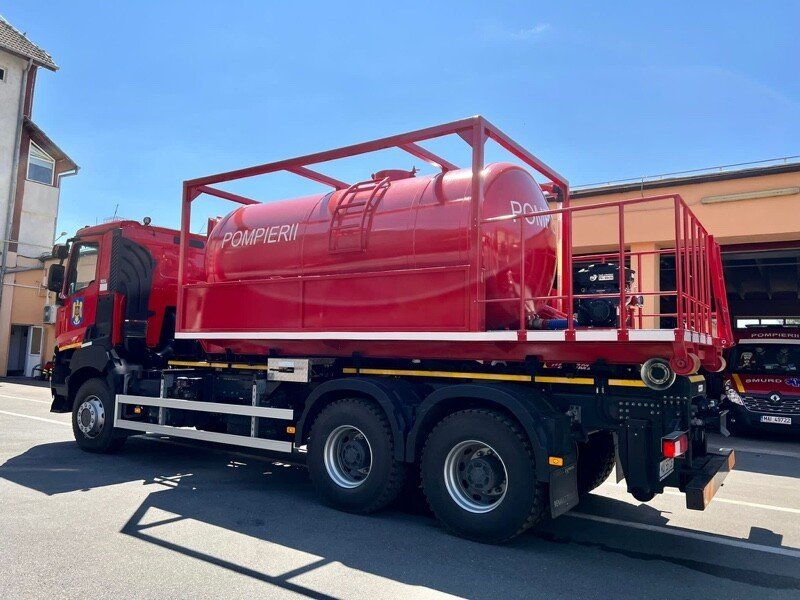 Inspectoratul pentru Situații de Urgență „Cpt. Dumitru Croitoru” al județului Sibiu a fost dotat un rezervor de transport apă pe platformă de container tip Abroll, cu sprijinul Consiliului Județean Sibiu.