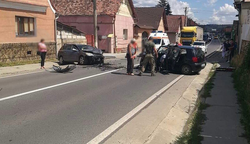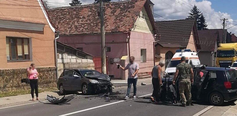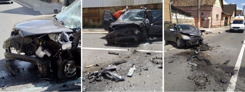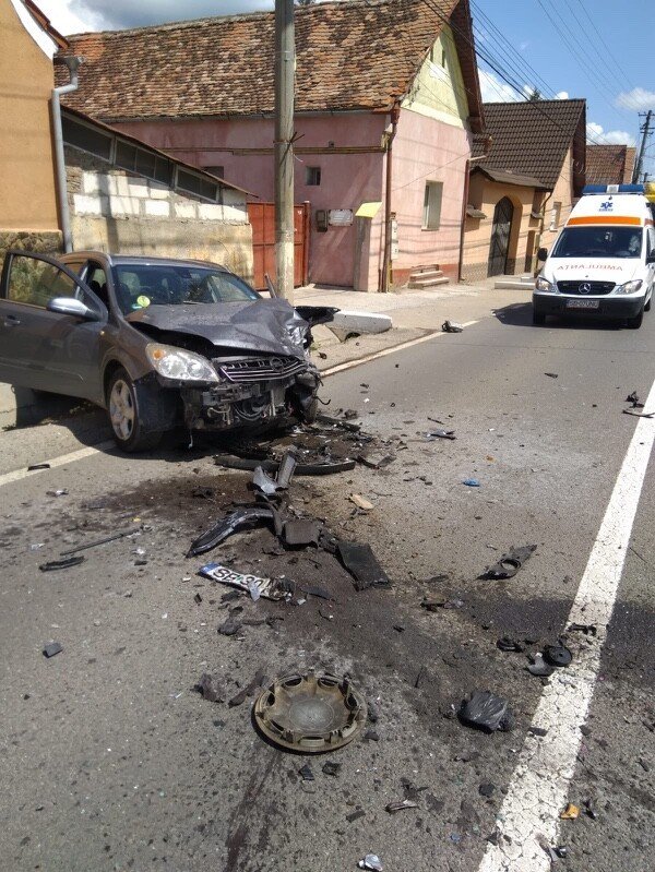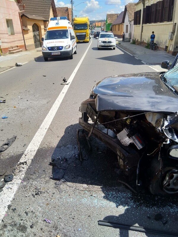 Cele două mașini, una condusă spre Mediaș, de către un localnic în varsta de 70 de ani, cealaltă condusă spre Sibiu, de către o tânără în vârstă de 22 de ani, din Slimnic, au intrat într-o coliziune frontală.