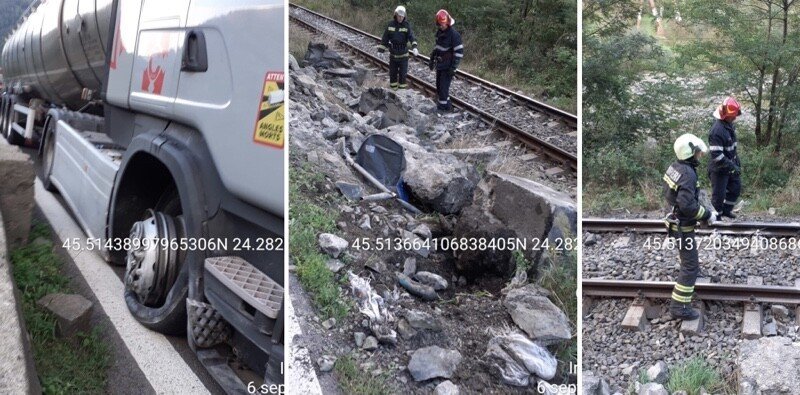 FOTO: Parapet din piatră, aruncat pe calea ferată de pe Valea Oltului