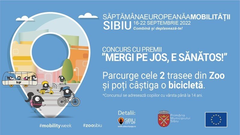 Apoi, pentru a fi înscriși la concurs, pozele trebuie încărcate până în data de 22 septembrie, ora 23.59 pe pagina de Facebook a copilului sau a unuia din părinți, neapărat însoțite de AMBELE hastag-uri #mobilityweek #zoosibiu. Foarte important, pentru ca fotografiile să poată fi găsite la căutare, pagina de Facebook trebuie să fie deschisă.