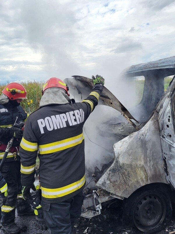 Forțele ajunse la fața locului, au constatat că incendiul se manifesta la cabina unei autoutilitare de tip platformă.