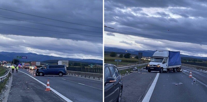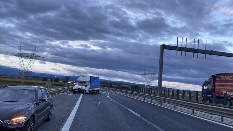 Traficul se desfășoară pe banda de urgență, benzile 1 și 2 fiind momentan blocate.