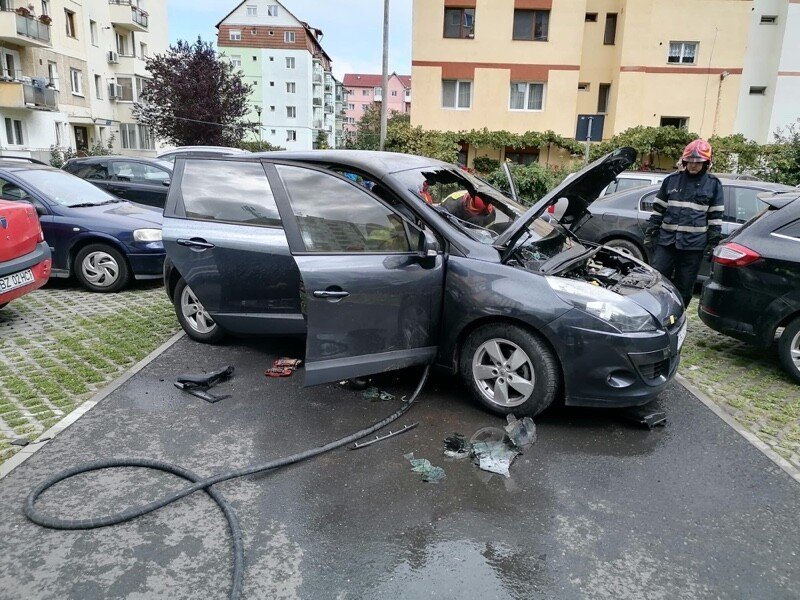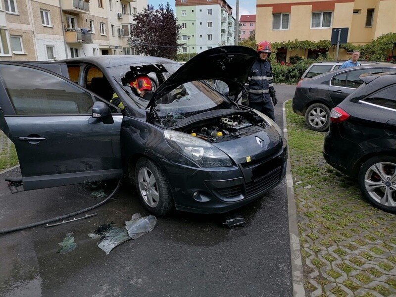 O mașină parcată pe Bulevardul Mihai Viteazu din Sibiu a suferit pagube însemnate din cauza unui incendiu.