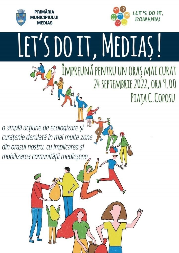 Primăria Mediaș, împreună cu unitățile de învățământ din municipiul nostru participă și în acest an la evenimentul național „Let’s Do It, Romania“, a cărui misiune constă în mobilizarea cetățenilor, a autorităților publice, a societății civile, a companiilor private și a mass media pentru curățarea arealelor naturale din jurul localităților României.