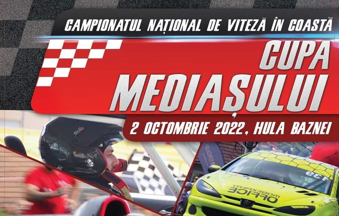 Duminică, 2 octombrie 2022, la Mediaș se va desfășura etapa cu numărul 7 din cadrul Campionatului Național de Viteză în Coastă, eveniment organizat de către Primăria Municipiului Mediaș și Federația Română de Automobilism Sportiv. Manifestarea va avea loc pe Hula Baznei (DN 14A, ieșirea spre Târnăveni), la competiție fiind înscriși 62 de piloți țară și străinătate, reprezentanți ai cluburilor și echipelor de top ale automobilismului sportiv.