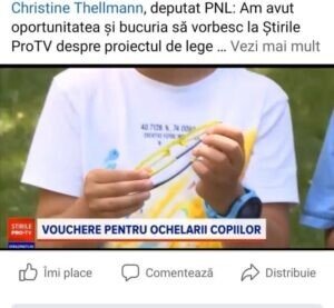 Am avut o discuție foarte bună cu doamna doctor, care mi-a dat motive în plus să lupt pentru adoptarea propunerii mele legislative prin care statul să faciliteze accesul elevilor la un consult oftalmologic, prin efectuarea acestuia chiar în școală, iar pe părinți încurajeze să le cumpere celor mici ochelari, dacă au nevoie.