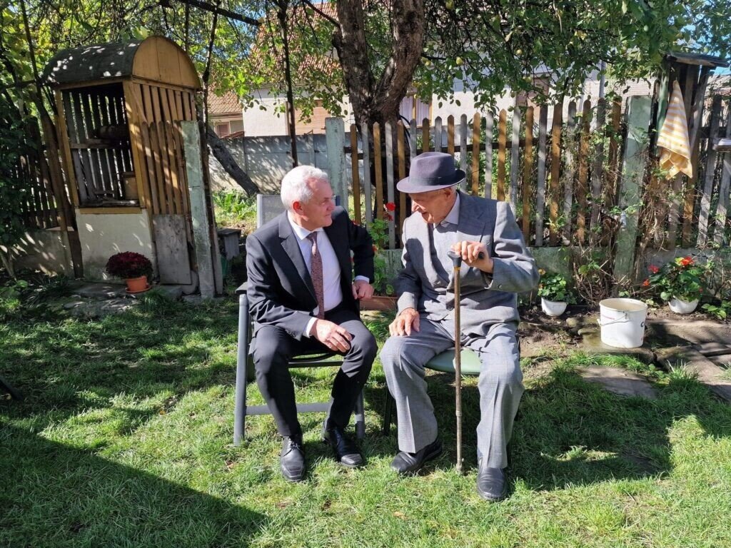 Moment emoționant în comuna Arpașu de Jos pentru maiorul (în retragere) Dobrin Nicolae, care ieri celebra vârsta de 100 de ani.