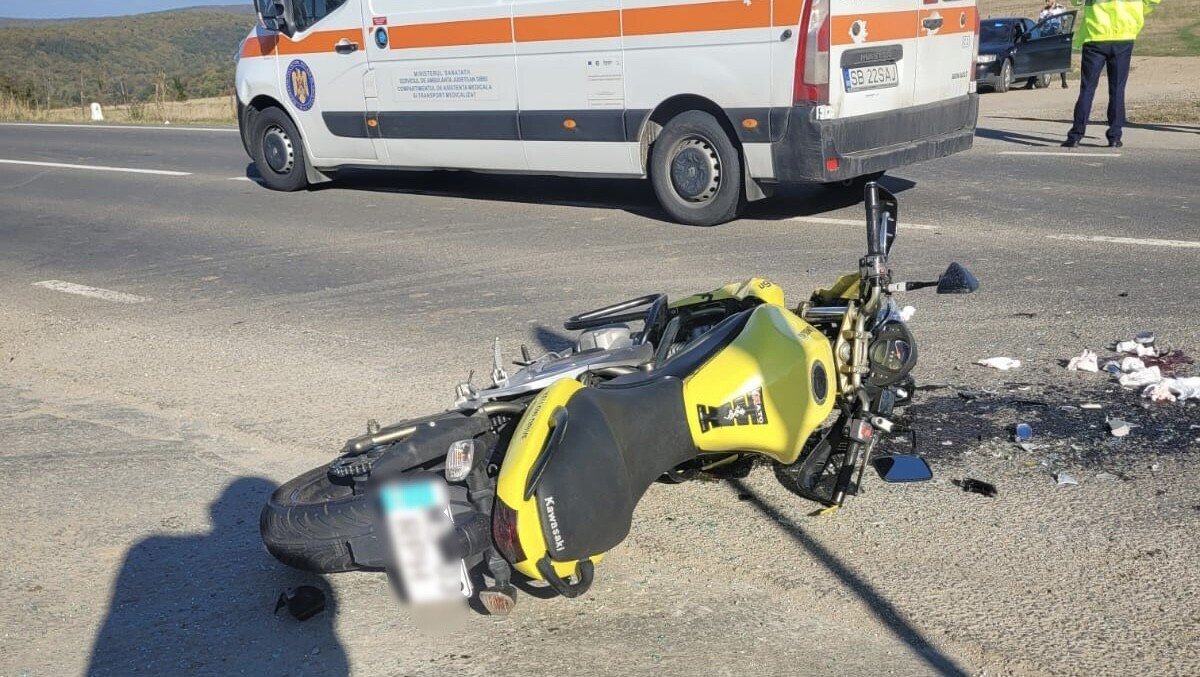 Un accident între o mașină și motocicletă s-a produs în urmă cu puțin timp pe DN 14, km. 10+380, între localitățile Șura Mare și Slimnic.