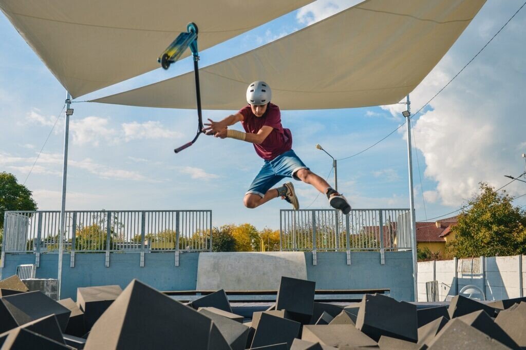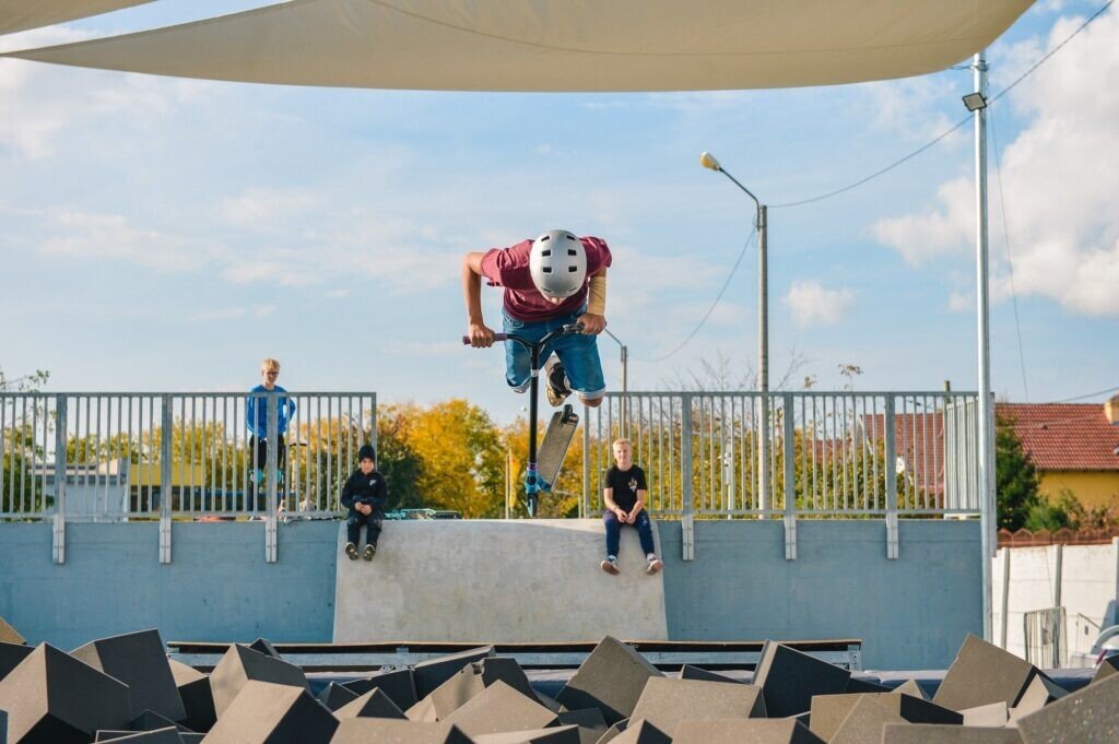 Foam pit-ul se adaugă celorlalte instalații ale skate park-ului, alcătuind circuite pentru BMX, skateboard, role, trotinete și MTB-uri.