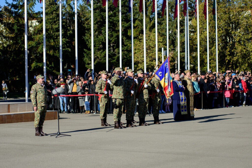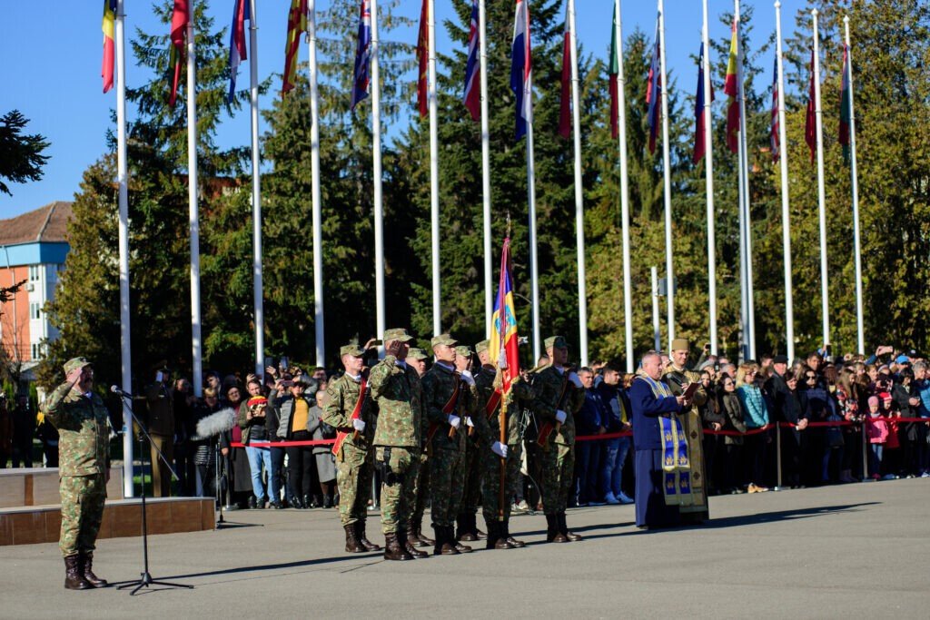 La acest eveniment unic în viaţa fiecărui militar a participat Comandantul Corpului Multinațional de Sud-Est (MNC-SE), gl.mr. Dragoș-Dumitru Iacob, alături de autorităţi publice locale, comandanţi ai structurilor din sistemul naţional de apărare, părinţi şi rude ai celor mai tineri militari sibieni.