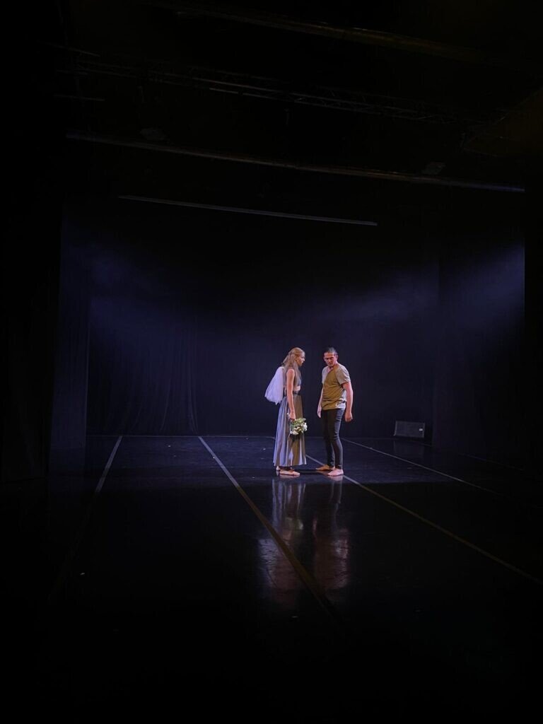 Spectacolul – producție a Universității „Lucian Blaga” din Sibiu, în parteneriat cu Teatrul Național „Radu Stanca” Sibiu – are în distribuție studenți și absolvenți ai Departamentului de Artă Teatrală (DAT): Andrada Oltean, Isabela Haiduc și Costea Gajim. Totodată, spectacolul se bucură de ajutorul Violetei Buduleci și al lui David Guță – la rândul lor, masteranzi ai specializării de Management și Antreprenoriat Cultural, respectiv Arta actorului, în cadrul DAT –, în timp ce managerul de proiect este conf. univ. dr. Luminița Bîrsan.