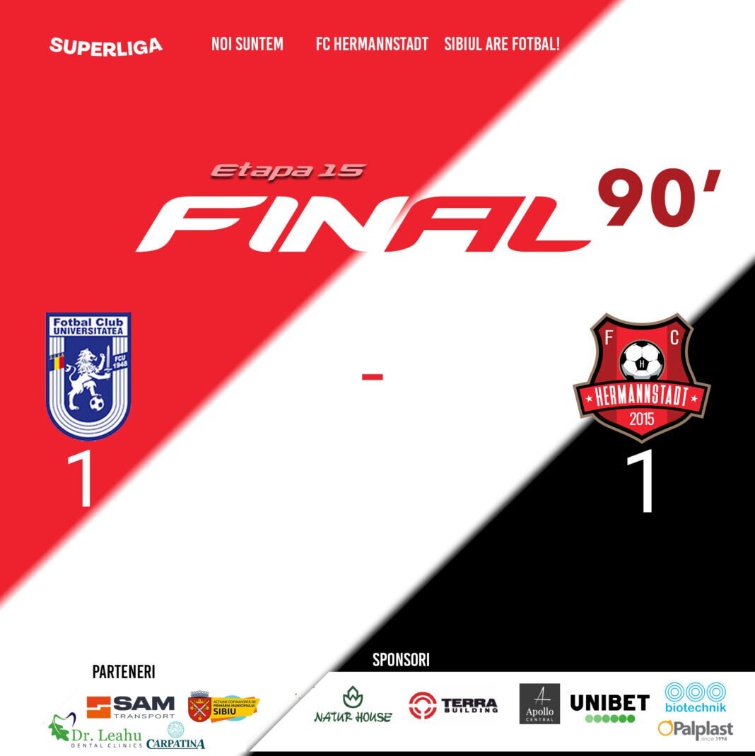 Sibienii au forțat chiar victoria, dar fără sorți de izbândă. Următorul meci pentru Hermannstadt va fi tot în deplasare. CS Mioveni – Hermannstadt se joacă pe 31 Noiembrie de la ora 18:00 și va fi transmis de Digi Sport, Orange Sport și Prima Sport.