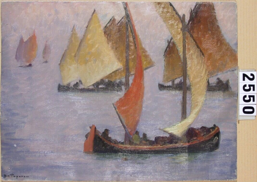 De la Muzeul Național Brukenthal din Sibiu provine tabloul „Peisaj cu bărci din Bretania” semnat de artist. Ștefan Popescu a fost fascinat de țărmul acestui colț de lume și l-a pictat intens, iar în țara noastră a avut foarte mult succes cu acest tip de peisaje. Colecționarii români de la începutul secolului XX își doreau cu ardoare să aibă o marină pictată de Ștefan Popescu, în timpul călătoriilor sale în Bretania.