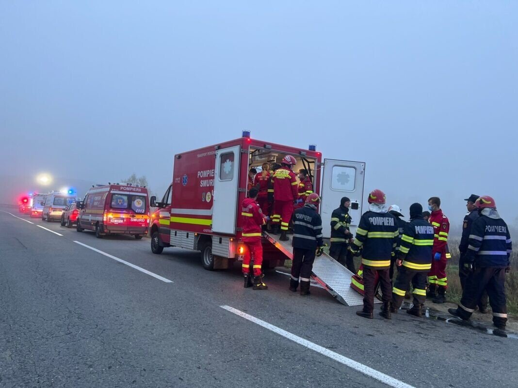 - 4 bărbați cu vârste cuprinse între 24 și 65 de ani politraumatizați au fost transportați de echipajele SMURD.