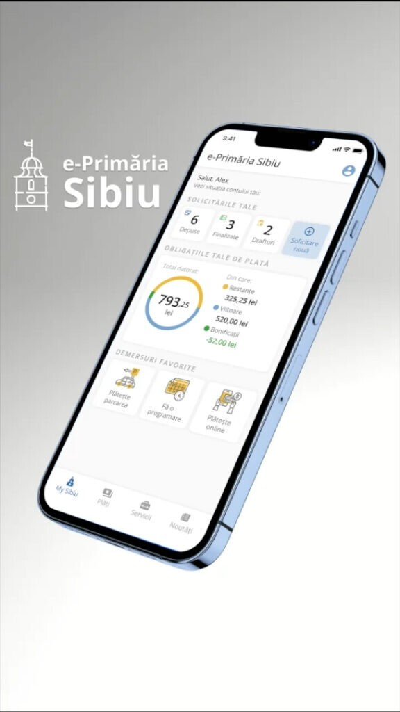 Aplicația mobilă e-Primăria Sibiu poate fi descărcată gratuit atât din Google Play și din App Store.