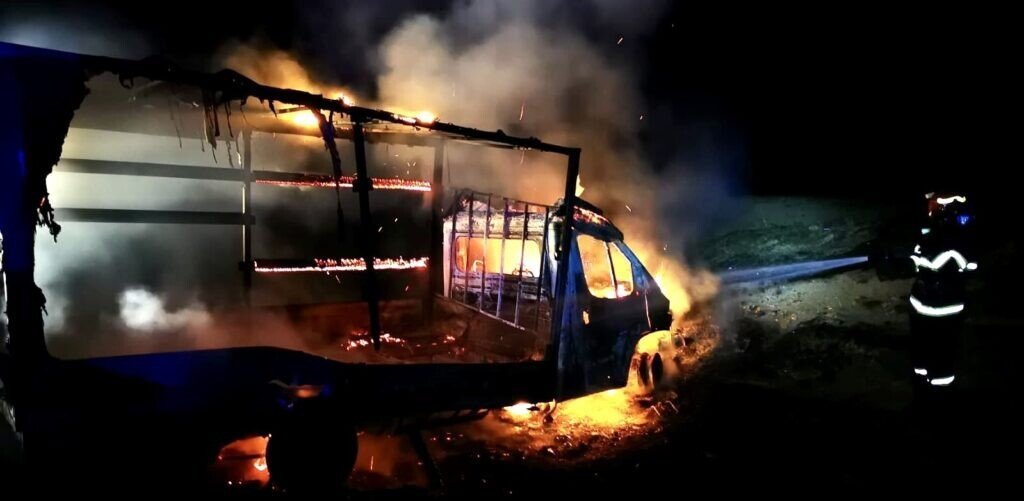 Autoutilitara a ars în totalitate. Nu au fost înregistrate victime.