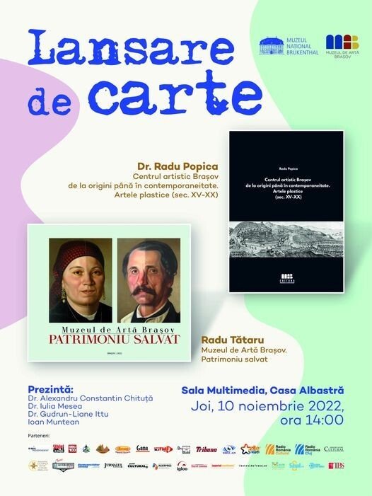 Muzeul Naţional Brukenthal Sibiu şi Muzeul de Artă Brașov vă invită joi, 10 noiembrie 2022, ora 14:00, la o dublă lansare de carte. Evenimentul se va desfășura la Muzeul Naţional Brukenthal Sibiu, în Sala Multimedia-Casa Albastră.