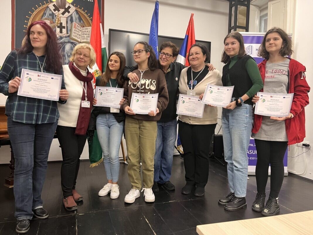 Daria: ”A fost prima mea participare în programul Erasmus+ și sunt foarte fericită că am avut această oportunitate. Am avut multe emoții deoarece au fost multe lucruri noi pentru mine. Sunt recunoscătoare că am văzut cum arată un alt sistem de învățământ, am învățat lucruri noi despre minoritatea sârbă din Ungaria și alături de acestea am vizitat multe obiective turistice într-un oraș european foarte frumos. Mulțumesc Erasmus+ !”
