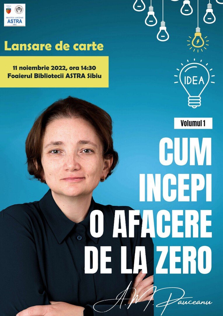 Biblioteca Județeană ASTRA Sibiu, instituție ale cărei acțiuni sunt posibile cu finanțare din partea Consiliului Județean Sibiu, invită publicul larg la evenimentul de lansare a cărții „Cum să începi o afacere de la zero” de Alexandrina Maria Păuceanu, în data 11 noiembrie a.c.