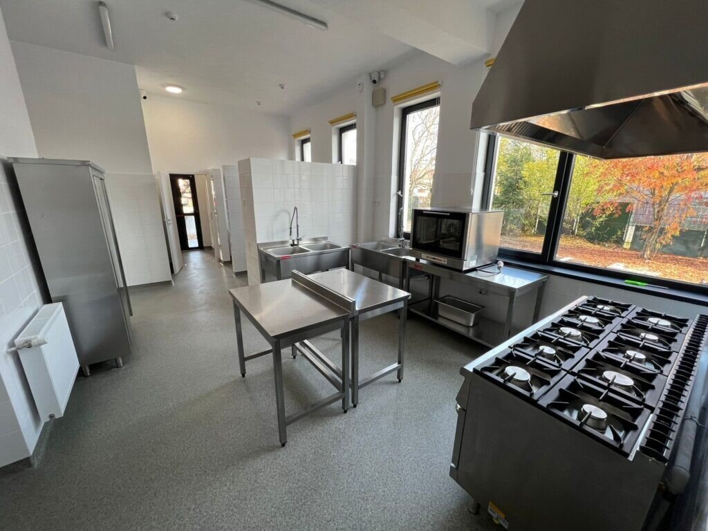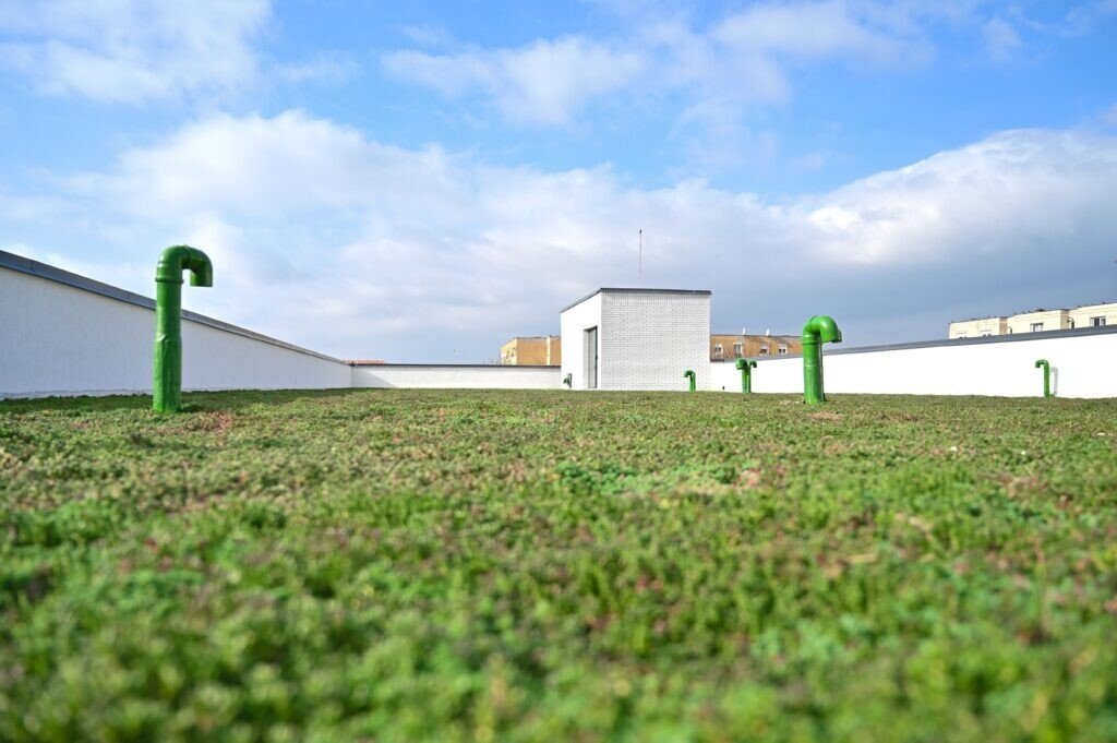 - Un spațiu generos, de 1300 de mp, clădirea fiind structurată pe parter și etaj. Aceasta este izolată termic și are un acoperiș “verde” pe care sunt amplasate și panouri solare care asigură energia pentru apă caldă în lunile însorite. Încălzirea a fost amenajată în pardoseli, iar iluminatul este eco-eficient, cu LED și senzori de prezență.