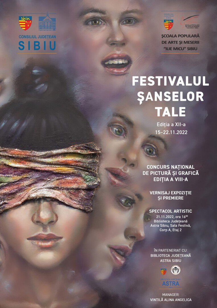 Consiliul Județean Sibiu, prin Școala Populară de Arte și Meserii „Ilie Micu” Sibiu, în parteneriat cu Biblioteca Județeană Astra, organizează în perioada 15 – 22 noiembrie expoziția de pictură și grafică cu tema „Așteptări” din cadrul „Festivalului Șanselor Tale” ediția a XII-a, la Biblioteca Județeană Astra, corpul A, sala festivă.