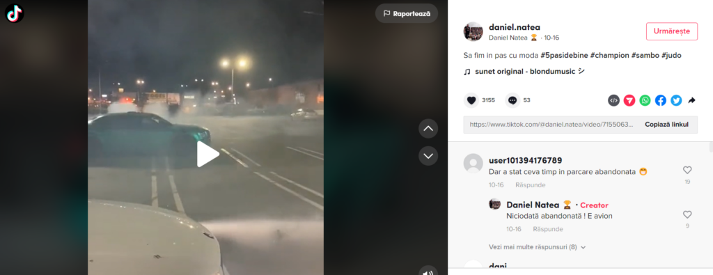 ACTUALIZARE: Daniel Natea a dorit să precizeze că filmarea este realizată mai demult, în anul 2020 și mașina nu îi mai aparține. El a dorit să precizeze că în filmarea de pe contul său de TikTok nu apare el. După apariția articolului sportivul a șters filmarea.