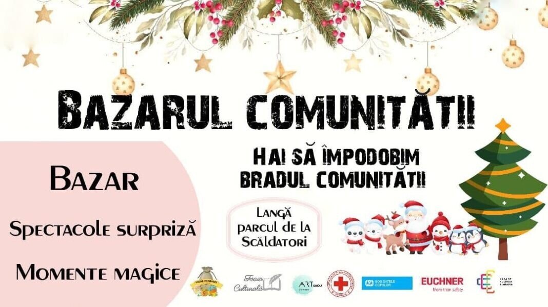 „Bazarul comunității” – primul eveniment caritabil de Crăciun, organizat în orașul Cisnădie va avea loc lângă parcul de la Scăldatori în zilele de 3-4 / 10-11 / 17-18 decembrie, începând de la orele 15:00 -18:00.