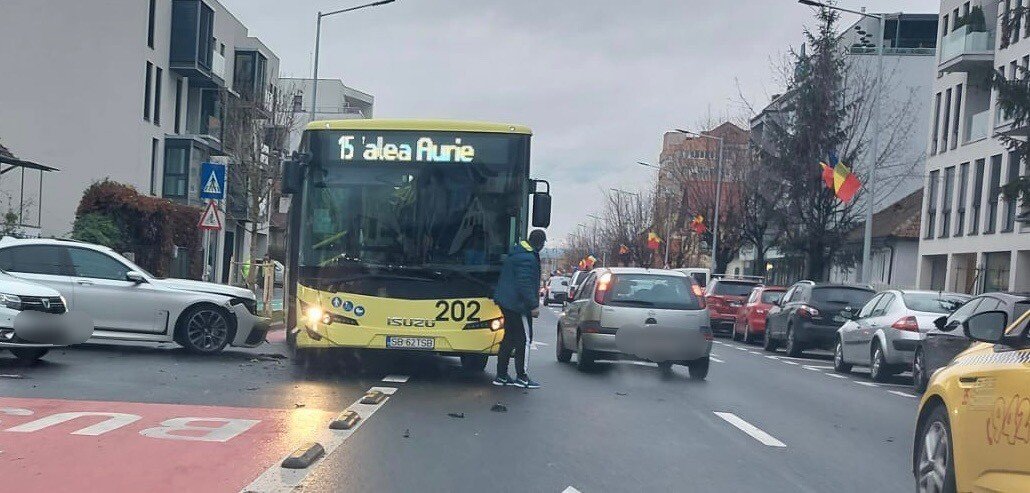 Un nou accident rutier în care este implicat un autobuz Tursib s-a produs în această după-amiază pe Calea Dumbrăvii din Sibiu.